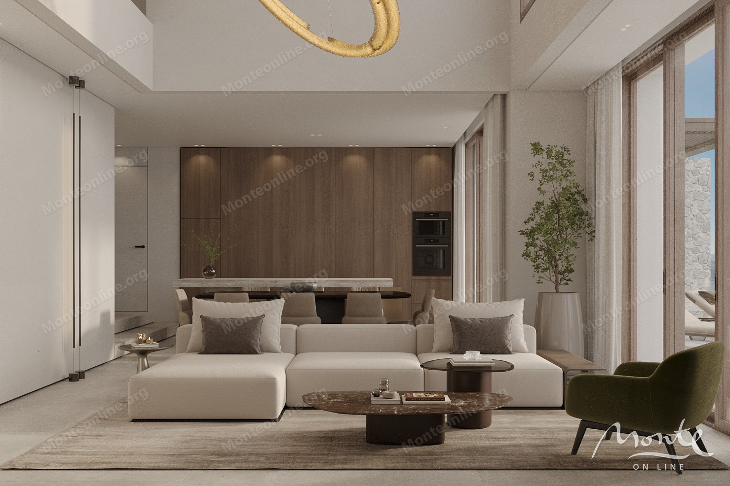 The townhouses are part of an exquisite residential collection built around Montenegro’s only 18-hole golf course designed by Gary Player, with sea views from every hole. The architecture, created by renowned studios, combines Mediterranean elegance with regional flair, using local stone and wood to create a timeless design.