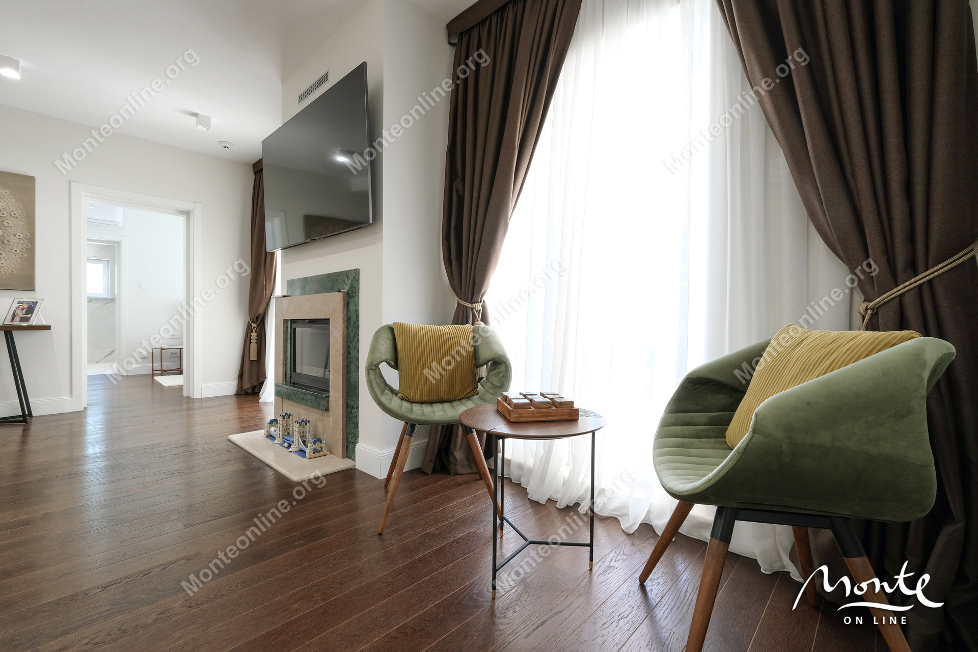 Квартира площадью 125,1 м² (общая площадь 166,6 м² с террасой 41,5 м²) отличается великолепными панорамными окнами, которые открывают захватывающие виды на море и горы. Чистовая отделка с мебелью от итальянских и немецких производителей создает атмосферу уюта и стиля. Качественные четырехкамерные стеклопакеты обеспечивают отличную шумоизоляцию, позволяя наслаждаться тишиной и спокойствием.