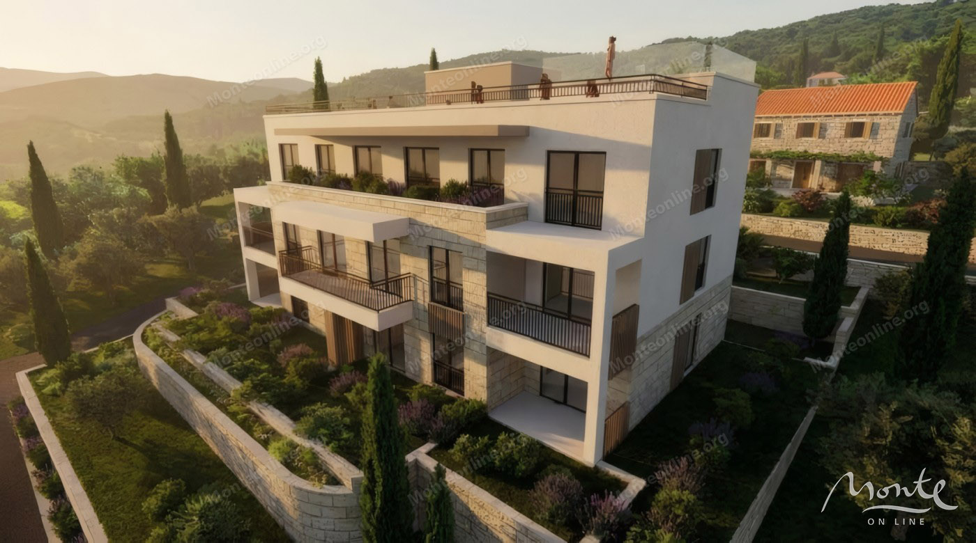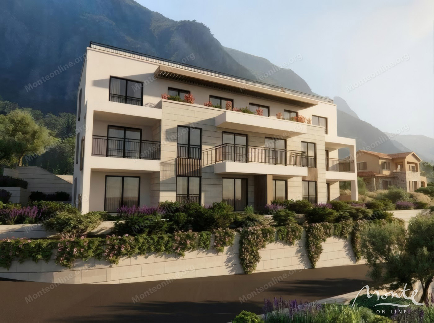 Квартира с 1 спальней в современном жилом доме с видом на море в Доброте
