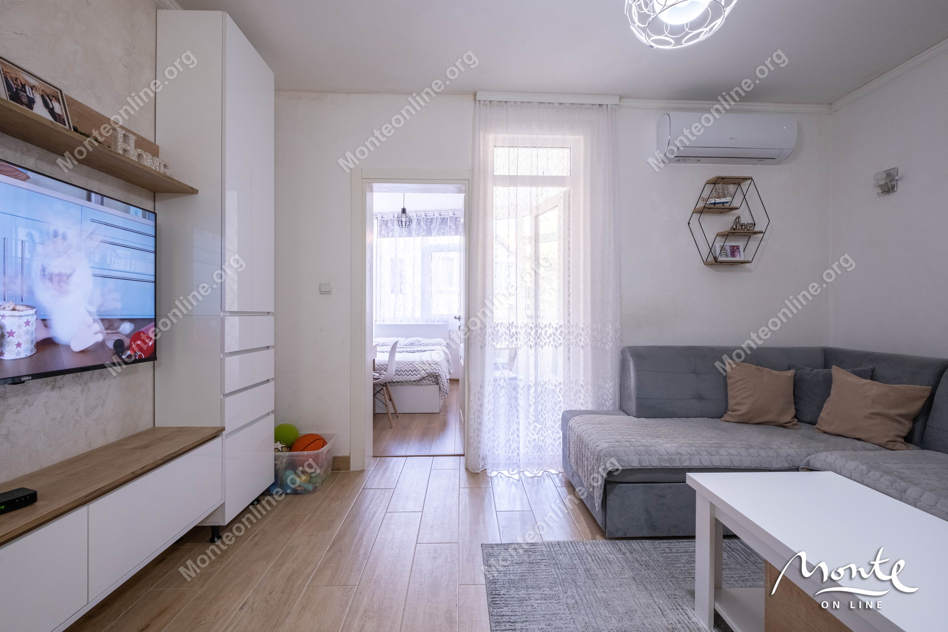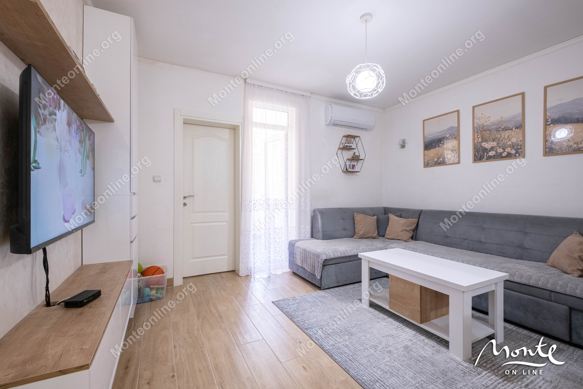 Квартира находится в качественно построенном здании, выполненном по современным стандартам и сочетающем комфорт и удачное расположение рядом с морем. Квартира расположена на 1 этаже жилого дома с лифтом и частной парковкой. Полностью обставлена мебелью и готова к проживанию — идеальный вариант для тех, кто хочет купить жильё в Черногории без дополнительных вложений. Просторная гостиная совмещена с кухней и обеденной зоной в открытой планировке. Интерьер оформлен в современном стиле, с качественной отделкой, плиточным полом и тщательно подобранными деталями.