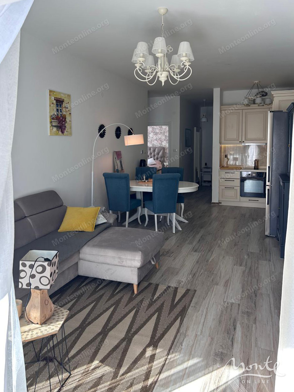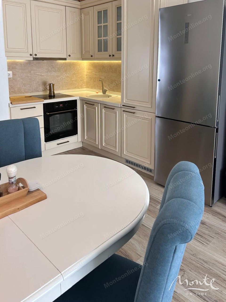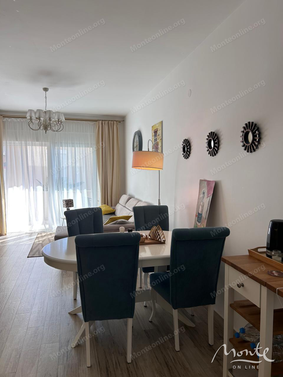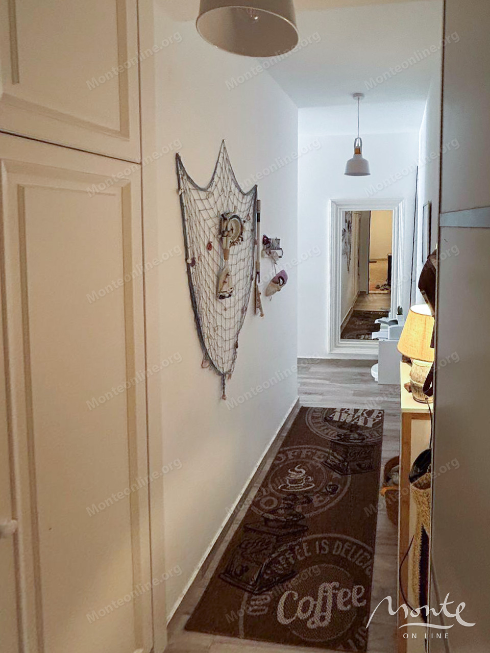 Квартира полностью меблирована качественной бытовой техникой и готова к немедленному заселению. Ее структура включает две уютные спальни, две современные ванные комнаты, просторную гостиную, объединенную с кухней, а также большой балкон. С балкона открывается захватывающий панорамный вид на лазурное Адриатическое море, создавая идеальное место для отдыха и наслаждения морским пейзажем. Для дополнительного комфорта установлена система подогрева пола.