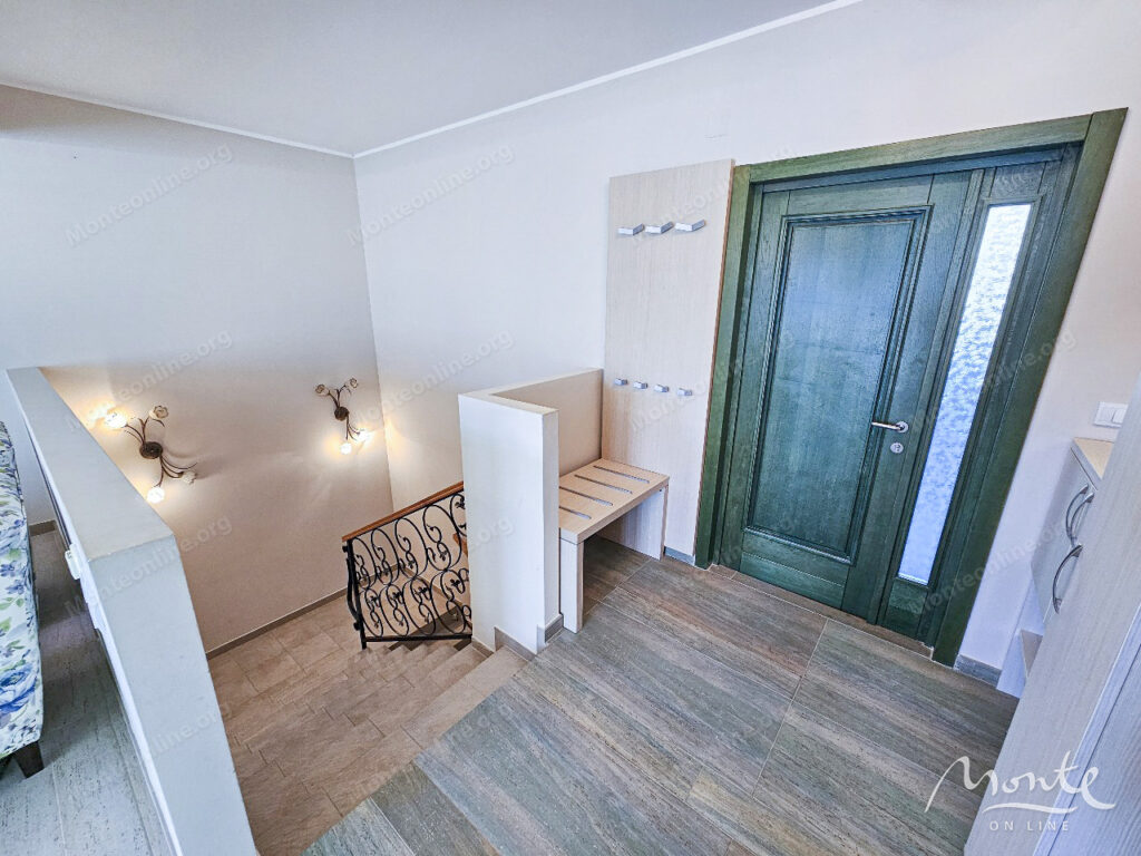– верхний этаж: просторная гостиная с камином, совмещённая с кухней, прихожая и санузел, терраса с панорамным видом на Адриатику;