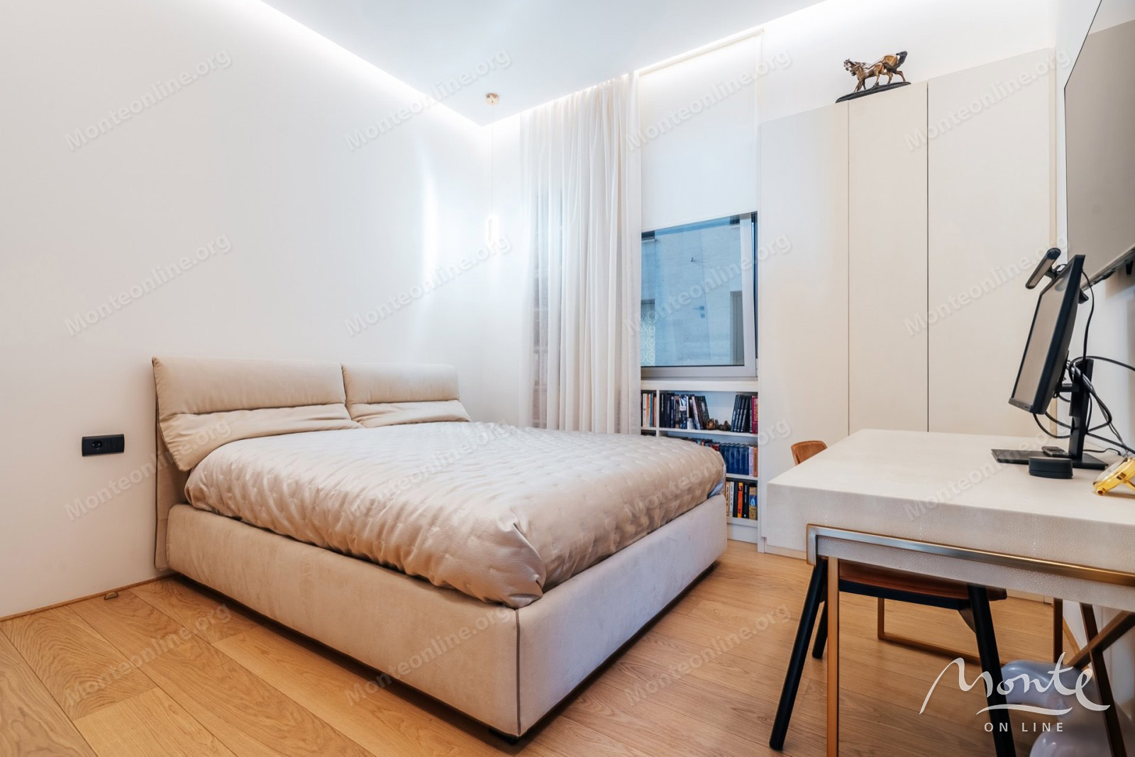 Интерьер квартиры выполнен по индивидуальному дизайн-проекту, где тщательно продумана каждая деталь — от эргономичной планировки до качественной отделки. Из панорамных окон открывается захватывающий вид на Адриатическое море.