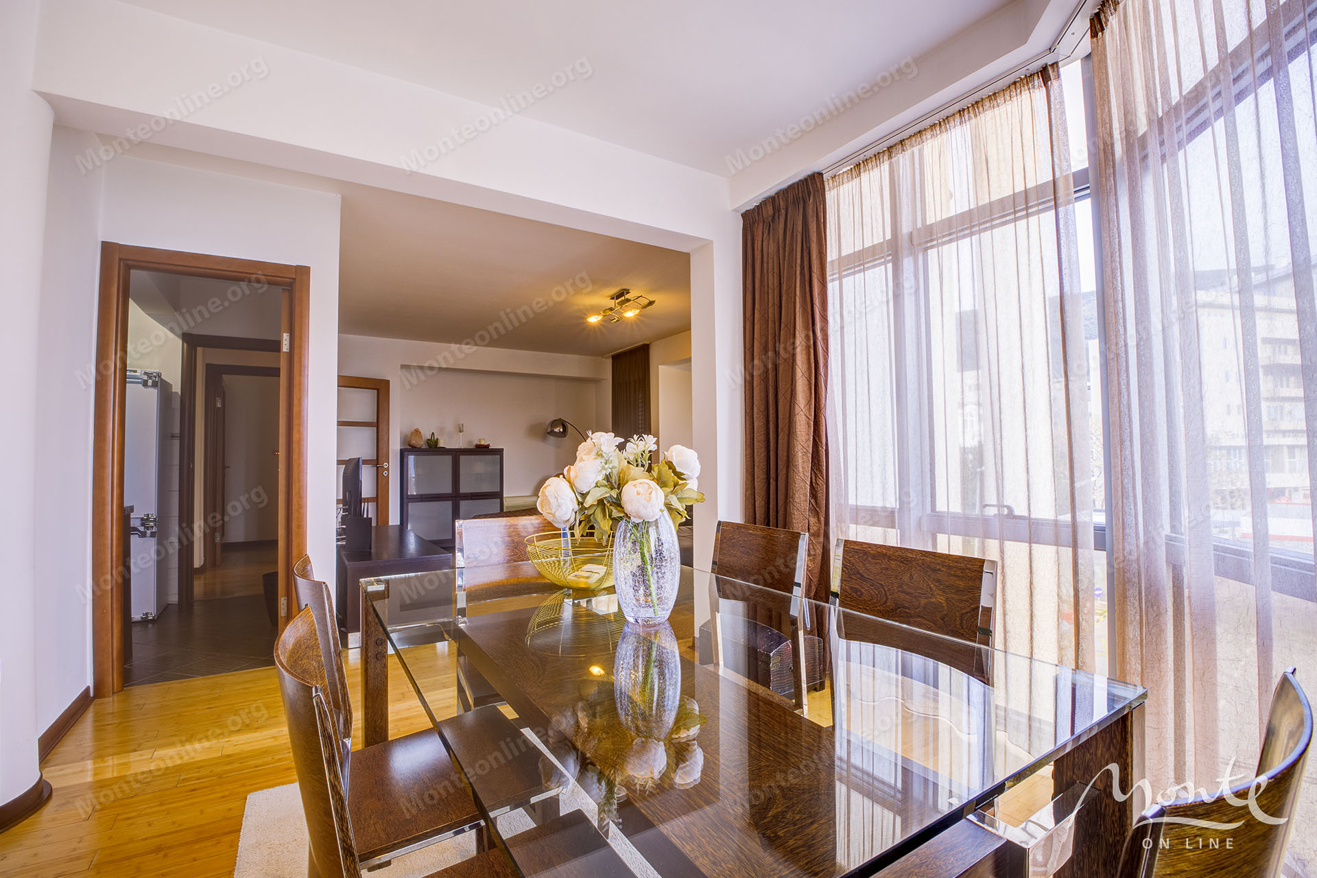 Квартира отличается удобной планировкой, включающей две спальни, одну ванную комнату и светлую гостиную. Особенностью интерьера является панорамное остекление в гостиной, которое наполняет пространство естественным светом и создает ощущение простора. Пол выложен качественным паркетом.