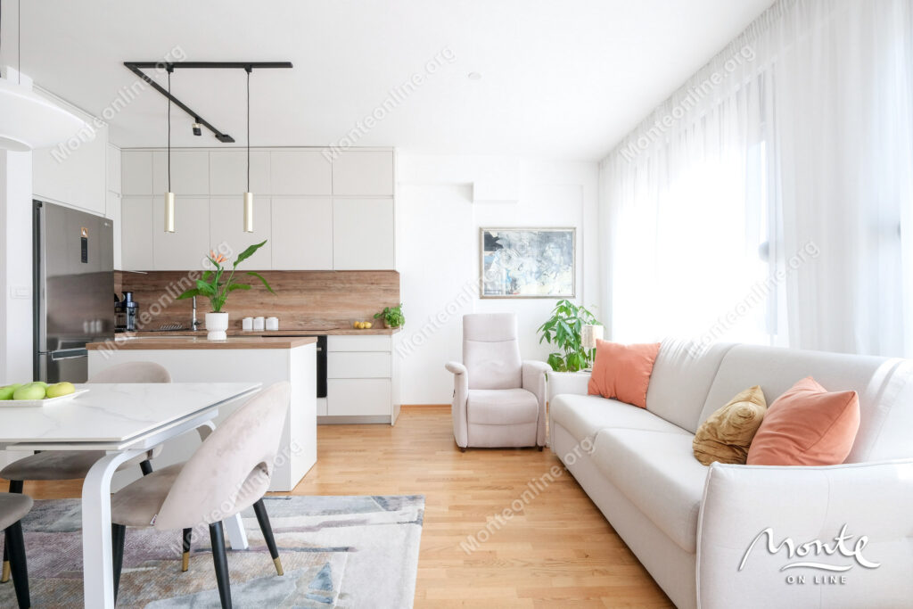 Предлагаем к продаже стильную и полностью меблированную квартиру в центре Тивата, в одном из самых удобных и престижных районов города.