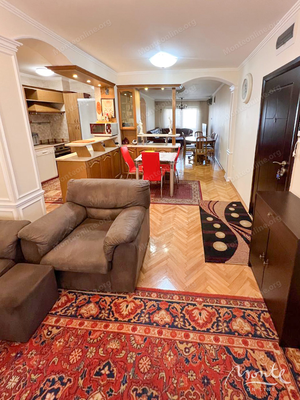 Представляем к продаже большую квартиру площадью 114 кв. м, расположенную на 2 этаже в одном из лучших районов Будвы. Эта квартира является идеальным выбором для тех, кто ищет просторное и комфортное жилье в центре событий, но при этом ценит тишину и уют.