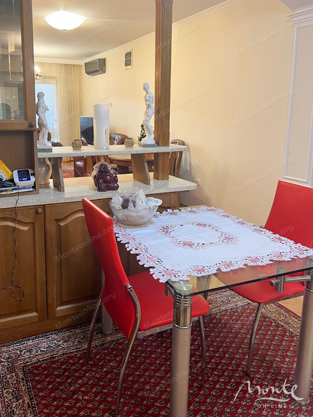 Квартира имеет удобную планировку с тремя спальнями и двумя санузлами. Она продается полностью меблированной и оснащенной техникой, что позволяет новым владельцам сразу же заселиться без дополнительных вложений. Окна выходят в тихий двор, обеспечивая спокойную атмосферу.
