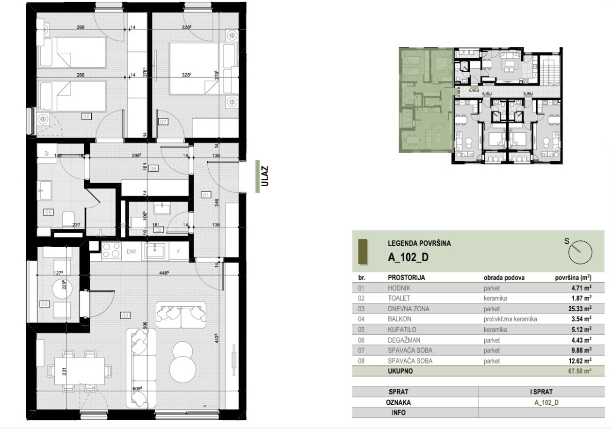 На продажу предлагается современная квартира с 2 спальнями площадью 68 м², расположенная на 2 этаже нового жилого дома в одном из самых динамично развивающихся районов Подгорицы – Забьело.