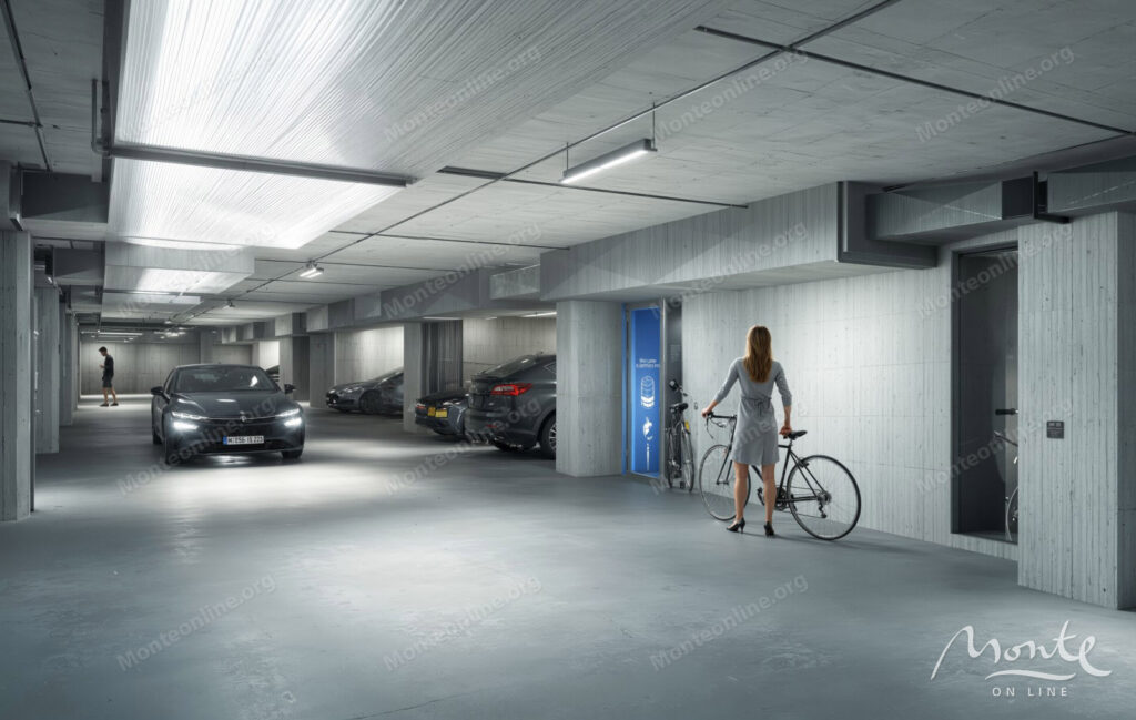 - Подземный паркинг с личным машиноместом для каждой квартиры и просторные кладовые для сезонных вещей и спортивного снаряжения.