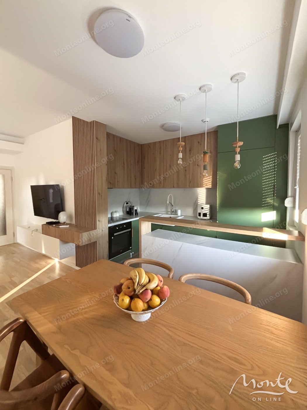 Предлагается к продаже стильная, полностью меблированная квартира с 2 спальнями площадью 67 м². Она расположена на втором этаже современного дома 2023 года постройки, напротив культурного центра Ribnica, в самом центре Подгорицы. Локация сочетает в себе городское удобство и спокойствие уютного жилого района.