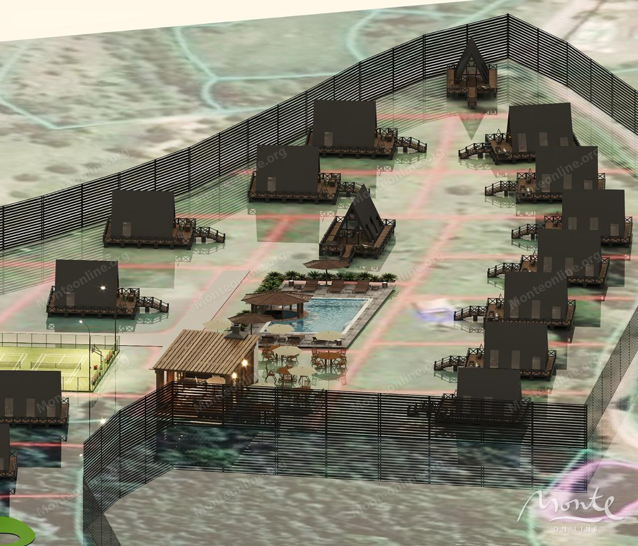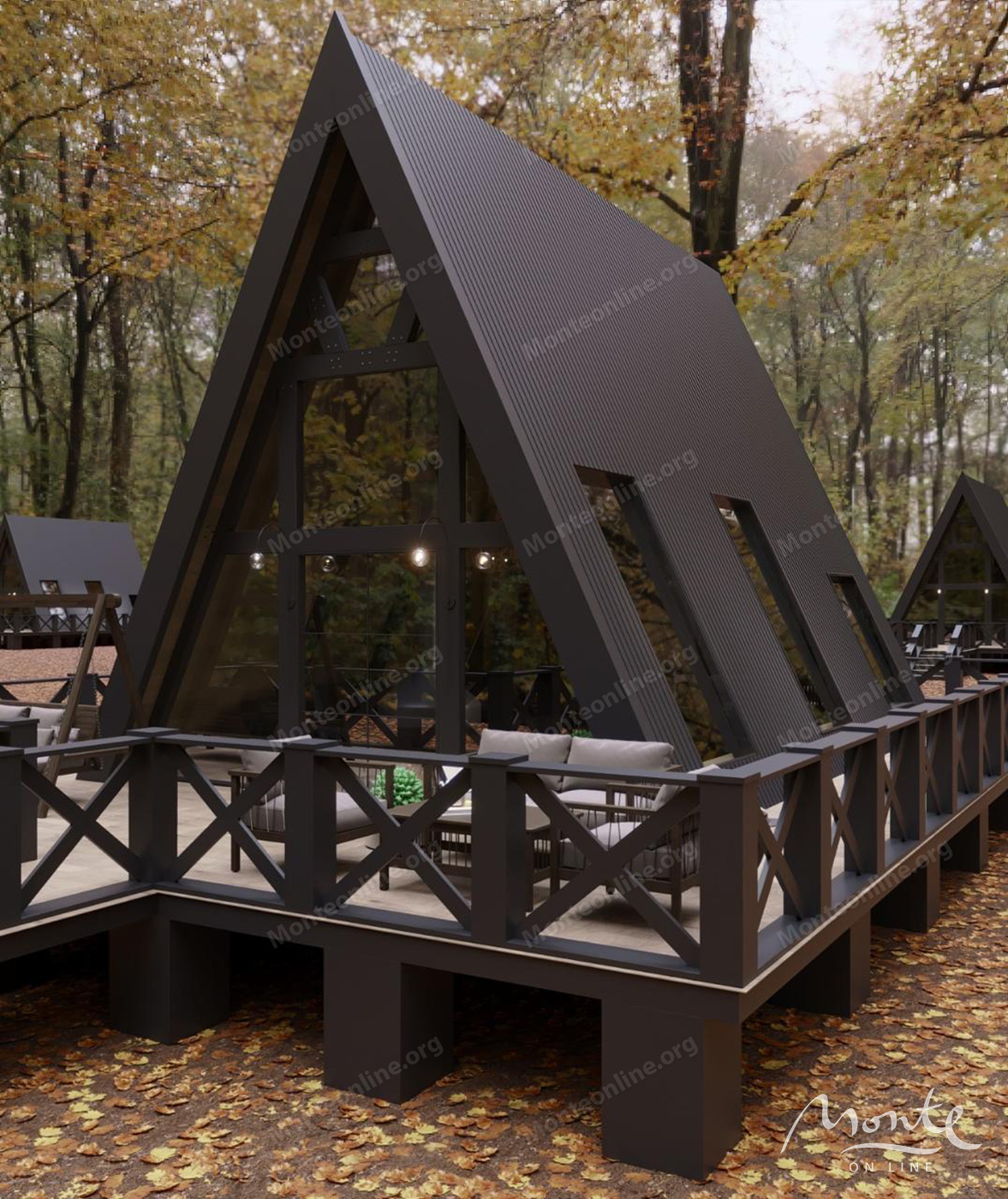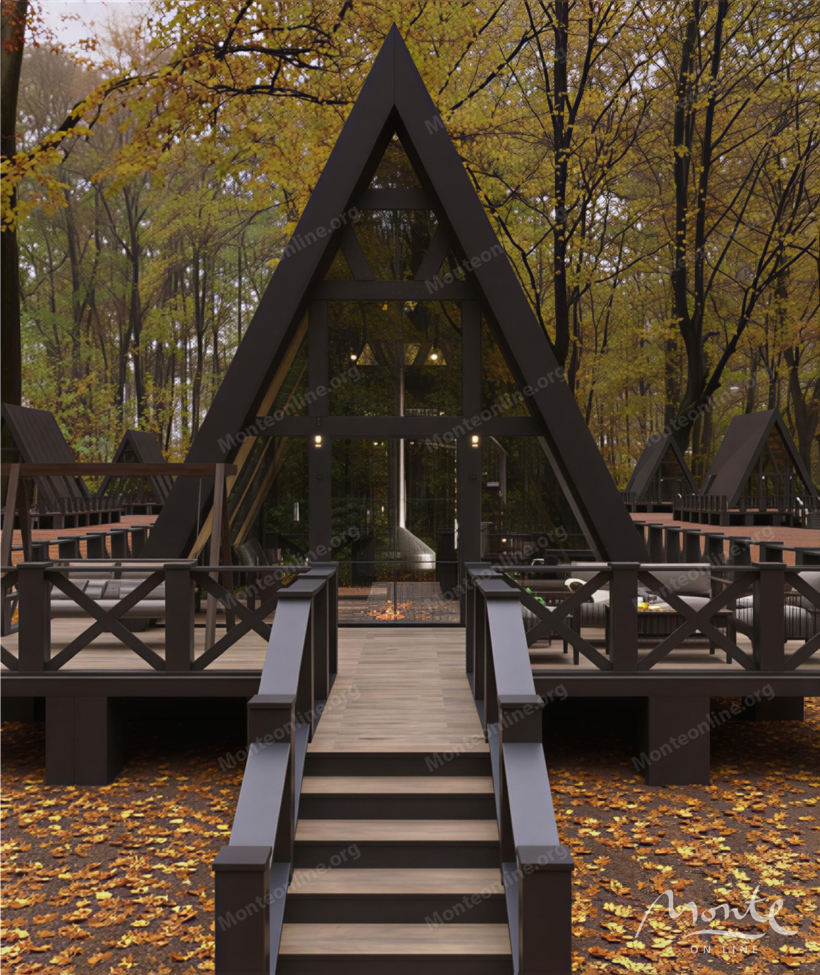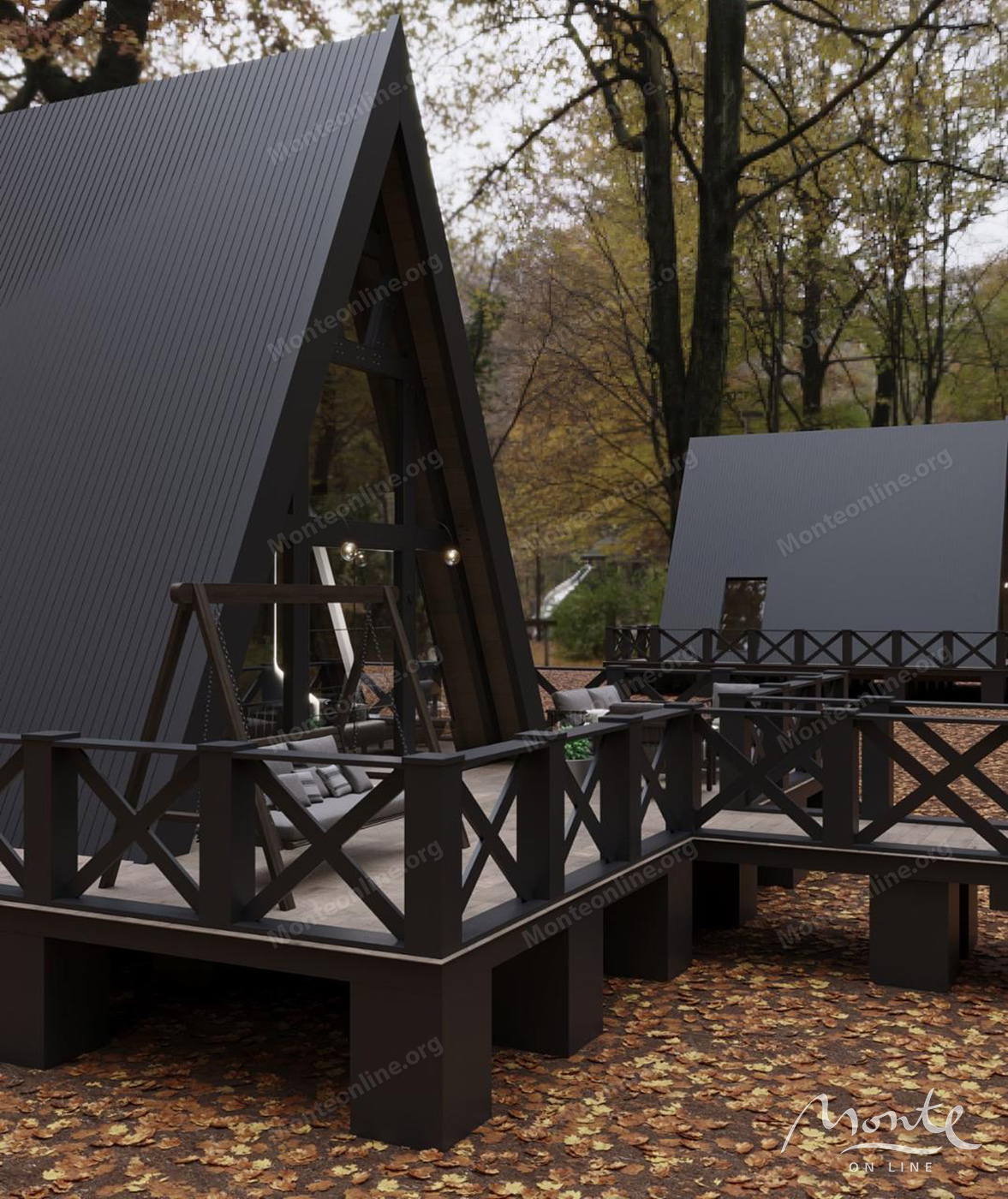 Проект выполнен в современном стиле A-Frame — востребованном архитектурном тренде, который гармонично вписывается в природный ландшафт. Минимализм, панорамное остекление и натуральные материалы создают атмосферу уюта, приватности и премиального отдыха. Каждый дом расположен на просторном участке площадью 1000 м², что гарантирует максимальное уединение и комфорт.