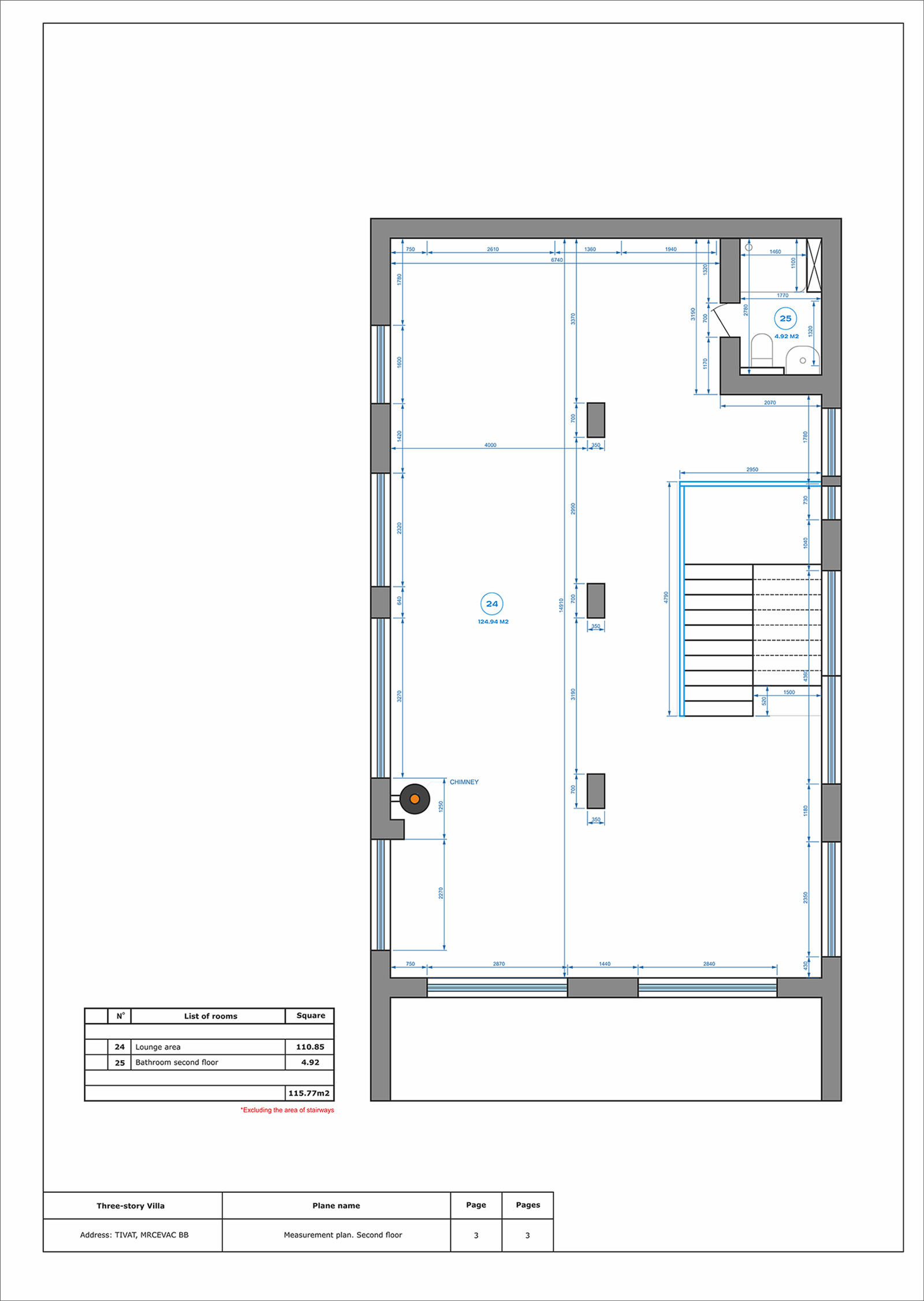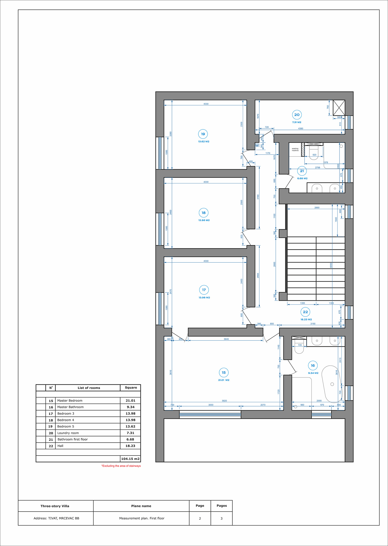 Drugi sprat sadrži dvije udobne spavaće sobe, zasebno kupatilo i prostoriju za pranje veša. Treći sprat sadrži prekrasan dnevni boravak sa radnom sobom, prostorom za sjedenje i kaminom, kao i dvije terase za uživanje u panoramskom pogledu.