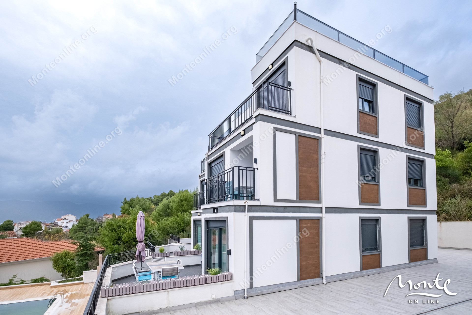Dvosoban stan u Tivtu, naselje Kava — terasa, pogled na more i bazen