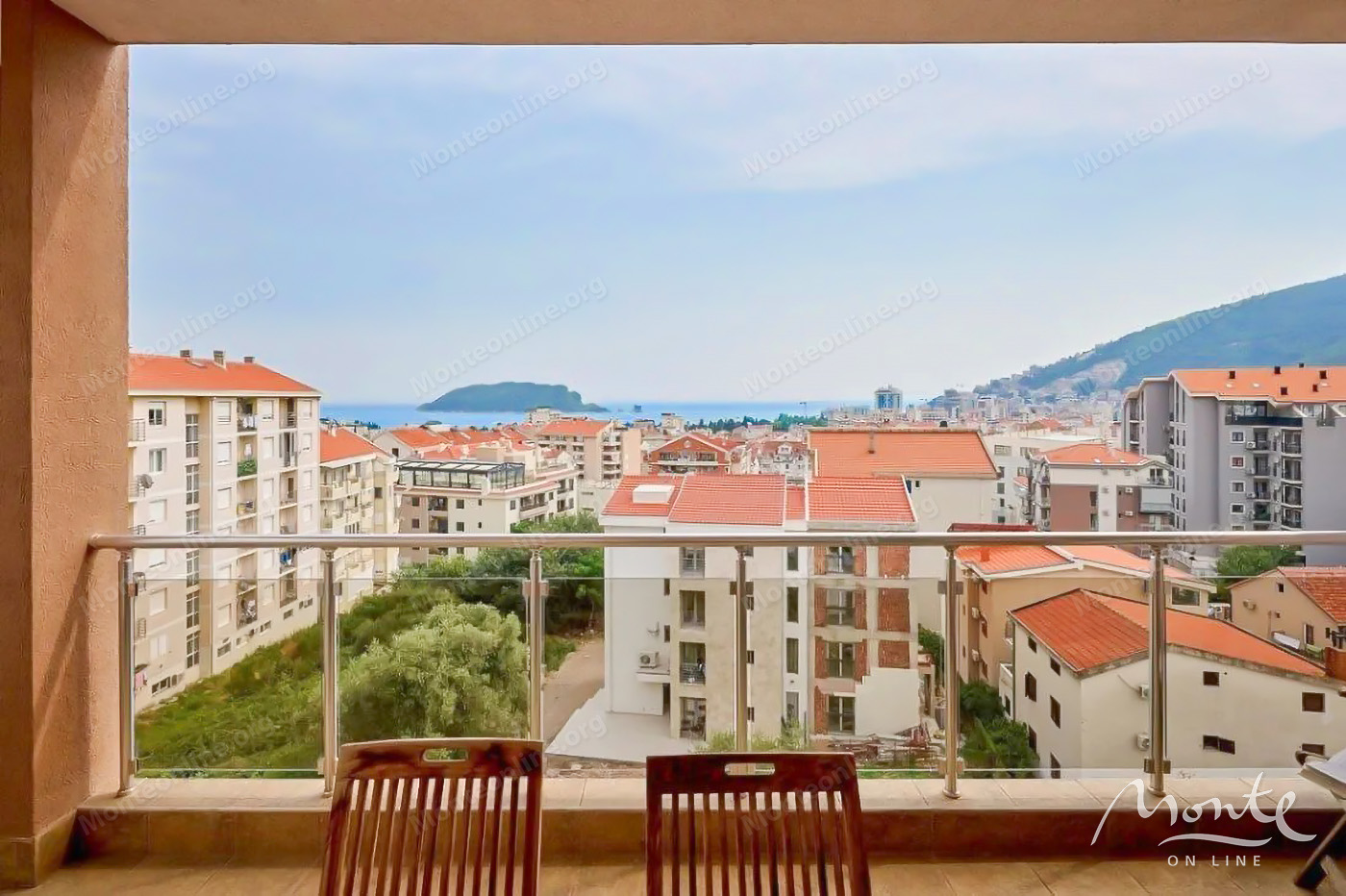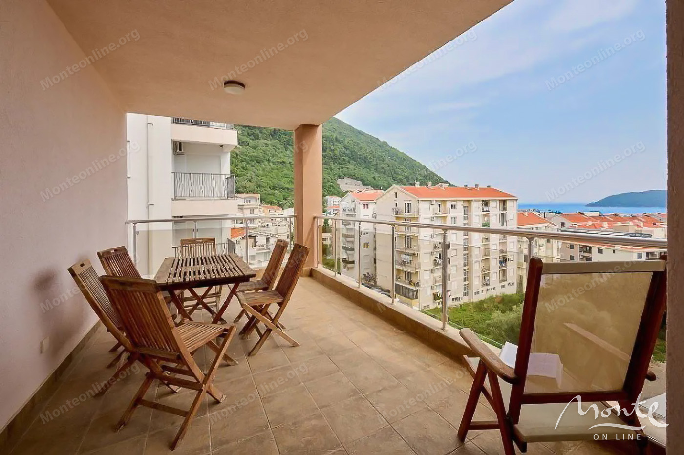 Ugodan dvosoban stan s velikom terasom i pogledom na more u Budvi